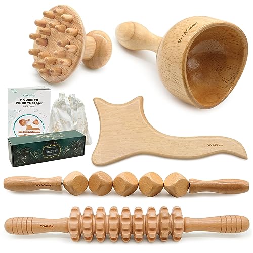 AccessoriesViVACious 5Pcs Wood Therapy Massage Tools with User Manual – Professional Maderoterapia Kit Colombiana, Wooden Lymphatic Drainage Massager Tools for Body Shaping, Muscle Pain Relief, & Body Contouring