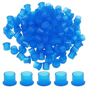 Tattoo Ink Cups Mixed – Yuelong 300Pcs Disposable Tattoo Ink Caps Blue Pigment Cups plastic Microblading Ink Cups With Base for Tattoo Supplies Eyebrow Microblading Tools