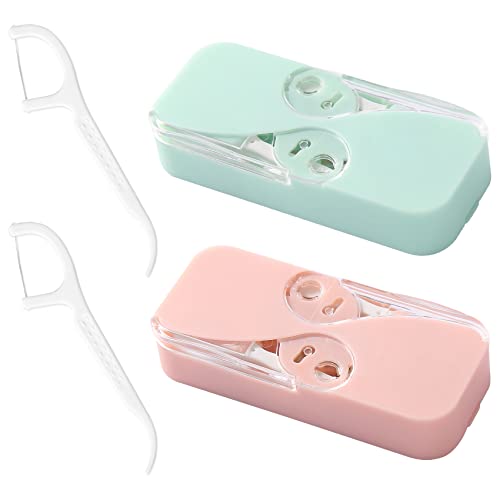 JIBIACB Dental Floss Portable Case Dental Floss Dispenser Automatic Dental Floss Picks Cases for Teeth Cleaning,Specialized Floss (Pink+Green)