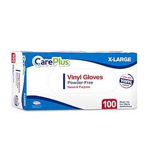 Safety GlovesCare Plus Disposable Vinyl Gloves | Extra Large Size | Heavy Duty | Non Sterile | Powder Free | Latex Free Rubber | 100 Count | Food Safe