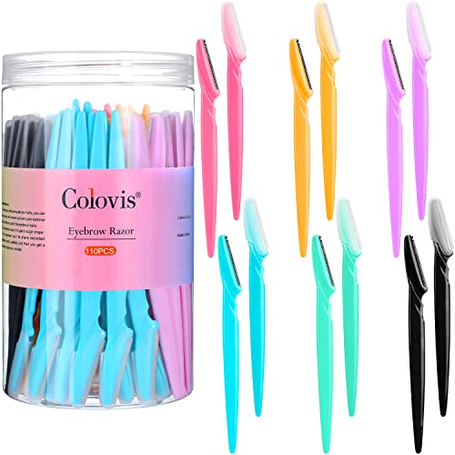 Colovis Eyebrow Razor and Face Razor for Women, 110 PCS Dermaplaning Tool Face Shavers for Women Multipurpose Eyebrow Trimmer Body Hair Removal for Women and Men with Precision Cover, 6 Colors