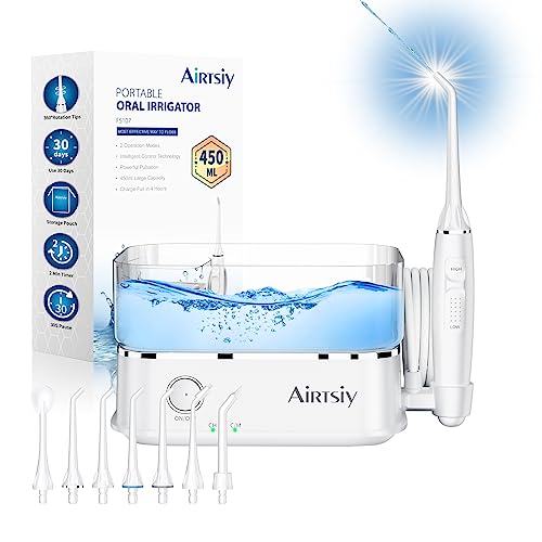 Airtsiy Cordless Water Flosser for Teeth Cleaning Compact 450ML Portable USB Rechargeable Oral Irrigator with 7 Interchangeable Tips & Auto Timer Travel Home Use Teeth Cleaner Pick