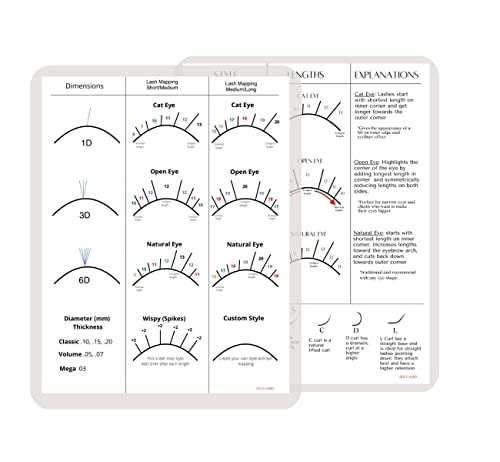 1 PC Beginner Chart PRINTED ON CARDSTOCK AND LAMINATED: to increase durability. These charts allow you to design your own lash mapping with a dry-eraser marker. We have also included short and long lengths to target everyone’s preferences. Contains 2 Designs (Front and Back design) What You’ll Learn: Dimensions Diameters Classic, Hybrid, and Volume 3 Main Lash Map Styles (Short and long lengths) Explanations for lash maps Customize Section to create your own map styles Custom Wispy Spike