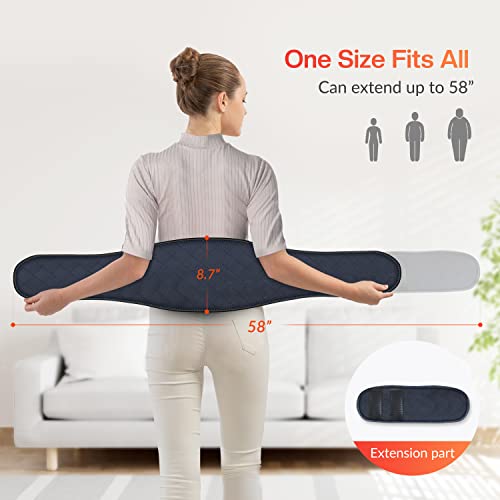 Extended Heating Belt: Comfier lower back massager for back pain features an extended heating belt to 58 inches that can be adjusted to fit your needs. The back massager with heat provides targeted heat therapy, promoting blood flow and reducing muscle stiffness for maximum relief.
