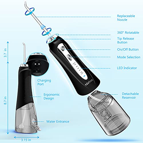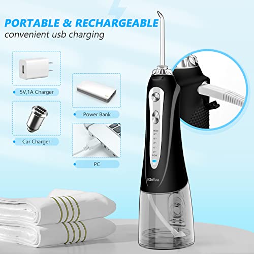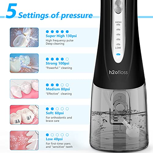Cordless Water Dental Flosser-H2ofloss Portable Oral Irrigator for Teeth Cleaning,Rechargeable Water Dental Picks with 5 Modes, IPX7 Waterproof and Powerful Battery for Home Travel