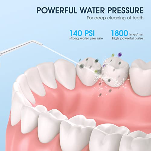 [Power Dental Flosser] Our dental water flosser delivers up to 1800 high-pressure water pulses per minute with powerful water pressure of 30-120psi to effectively remove food debris and plaque, ideal for people with implants, braces, crowns, or periodontal pockets.