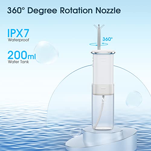 [Removable & retractable water tank] The oral irrigator water tank has a capacity of 200 ml, so you can use it comfortably without having to refill it repeatedly. The retractable water tank is leak-proof and drainage-proof, IPX7 waterproof design, which brings you a safe and comfortable using experience.