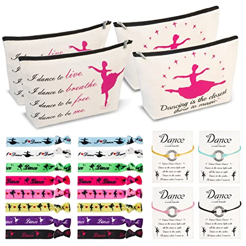 Dance Makeup Bags, BEDSIFV 24pcs Dance Gifts for Girls 4 Dancer Makeup Bags 16 Hair Ties 4 Wish Bracelets Personalized…