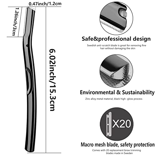 Dermaplaning razor,Eyebrow razor, metal eyebrow trimmer, replaceable blades, Shaver and Eyebrow Shaper For Women & Man,with 20 blades (black)