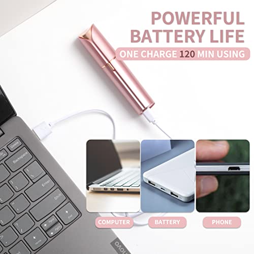 Facial Hair Removal for Women Painless Hair Remover, Waterproof Shaver Razor Hair Remover with LED Light for Face Bikini Peach Fuzz Upper Mustache Lip Chin (Rose Gold)