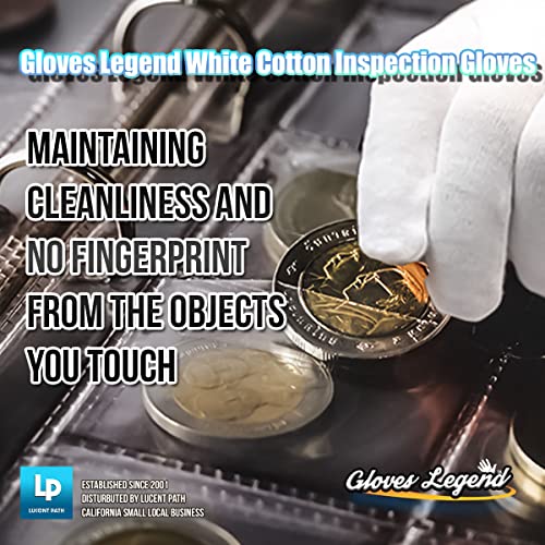 Gloves Legend 100% Cotton White Gloves For Work Safety Jewelry Coin Silver Inspection – Size Medium