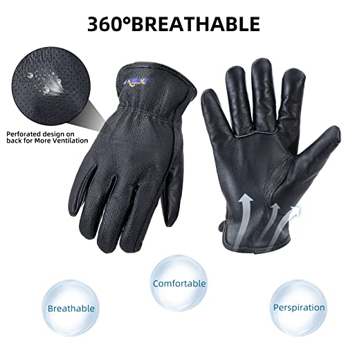 【INSIDE OF COWHIDE】 – No lining necessary for these leather work gloves because the material is naturally breathable, non-irritant, sweat-absorbent, and comfortable on your hands.