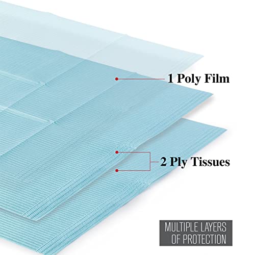 JMU Dental Bibs Disposable, 250pcs 3 Ply Waterproof Tattoo Bibs Tray Covers 13″ x 18″ Blue
