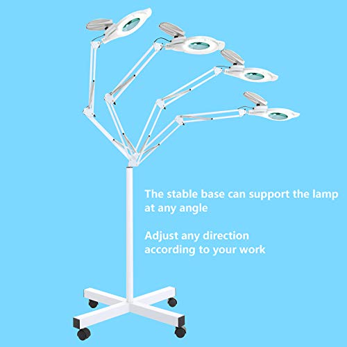 Multifunction Floor And Clamp Lamp: Best rolling base has the advantage of 4 wheels as it glides seamlessly across carpeting, hardwood floors, and other surfaces. The cross tripod will give you excellent stability, never fall down. In addition, as a clamp lamp, the utility clamp fits snugly on a desk, worktable, or bench. Exclusive design, meet your any needs.