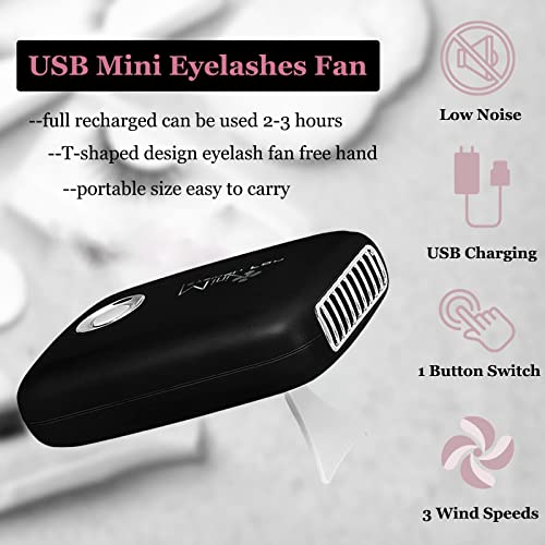【Mini Fan for Eyelash Extension】The lash fan dryer for eyelash extensions is built in rechargeable and cooling system to blow out cold air, 3 speeds adjustable wind to dry eyelash glue more quickly as you needs. T-shaped bracket on the back can make it stand stable on table, lightweight and small size is convenient and easy to carry and store. You can carry it in your bag for cooling daily use.