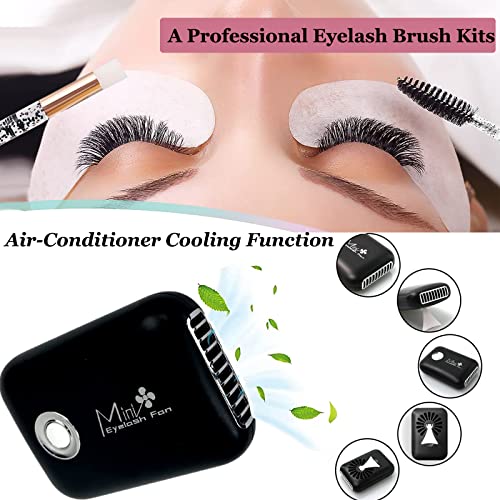 Lash Extension Supplies, AREMOD Eyelash Cleaner Kit for Extensions with USB Mini Lash Fan Dryer 50 Eyelash Brush 1 Nose Blackhead Facial Cleaning Brush 1 Plastic Wash Bottle(Black)