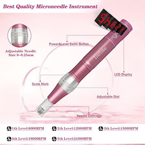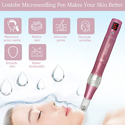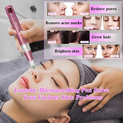 Loutsbe Cordless Electric Microneedling Pen 21000RPM, Professional Dermapen Machine With 30 Pcs Replace Cartridege (12-pins ×10, 36pins×10, nano×10) Beneficial Your Skin Suitable For Use At Home