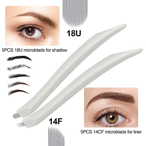 Microblading Pen, Mokohoa Microblading Supplies Disposable Microblading Pen with 5pcs 18U and 5pcs 14CF Disposable Individually Packaged Steril1zed Blades Microblading Pen