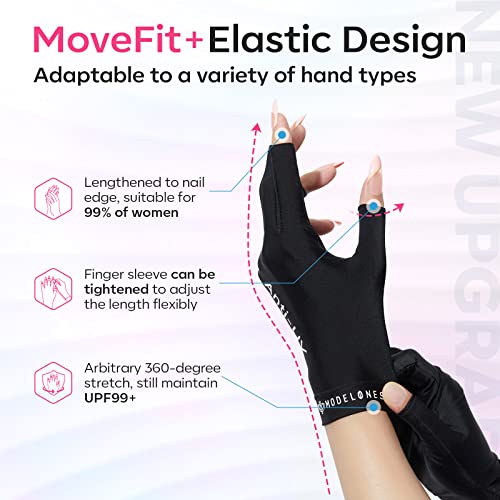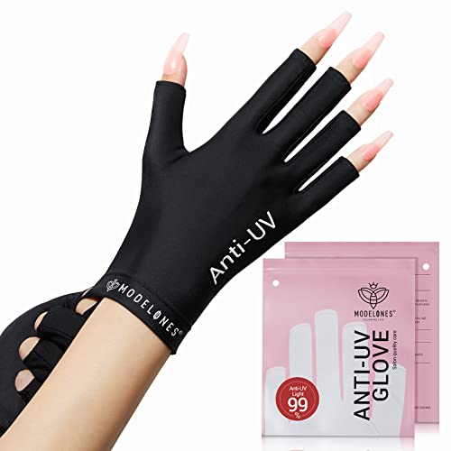 modelones UV Gloves for Nails, Professional UPF99+ UV Protection Gloves for Gel Manicures, Fingerless UV Light Gloves for Gel Nails, Anti UV Gloves for Gel Nail Lamp, Protect Your Skin from UV Harm