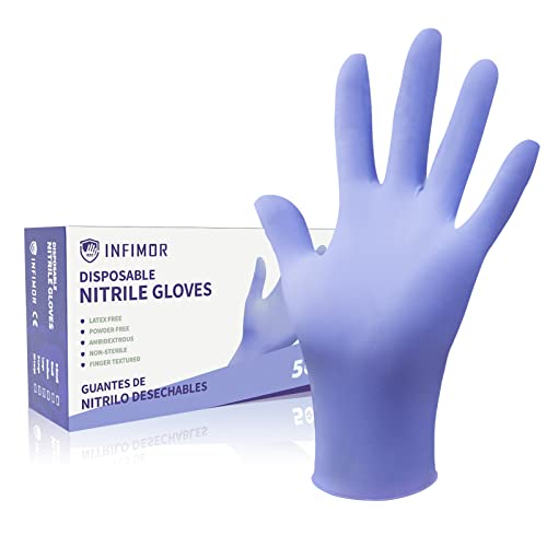 Infimor Gloves Nitrile Disposable Latex Free, 4 mil Powder Free Food Grade, Fingertips Textured Cleaning Supplies 50Pcs S-XL