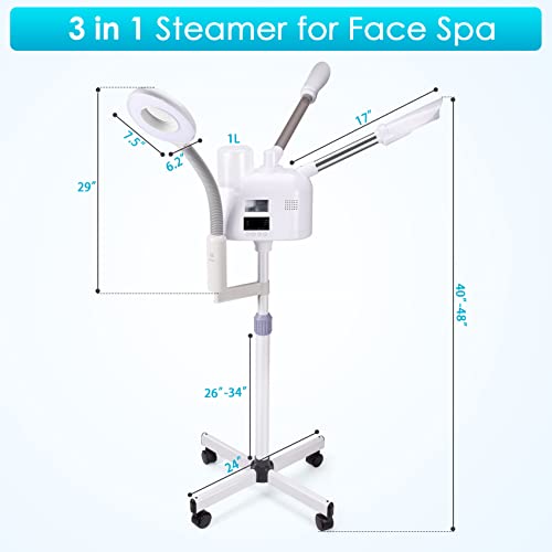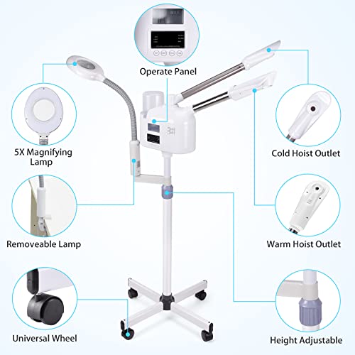 Seeutek Pro Rolling Facial Steamers for Face Professional 3 in 1 Facial Steamer Humidifier with 5X Mag Lamp,Face Steamer Standing Warm Cold Mist Digital LCD Screen for Home Salon Spa
