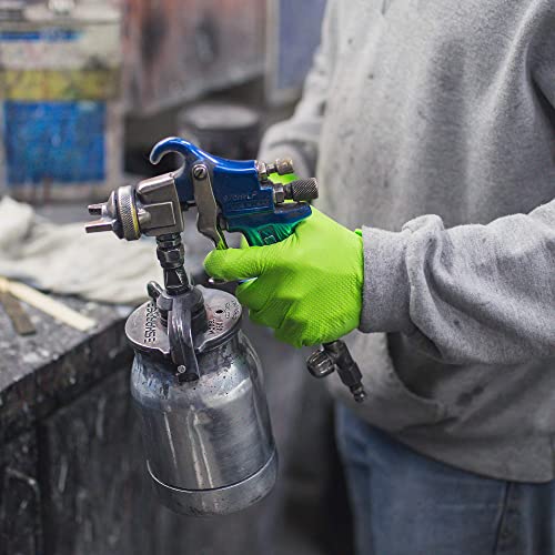HIGHLY VISIBLE: The refreshing green color makes the nitrile gloves and your hand easily recognizable and alerting even in darker environments, greatly improving safety in heavy-duty tasks such as mechanic, automotive, construction, and manufacturing.