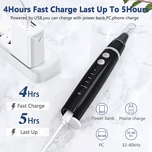 Ultrasonic Tooth Cleaner – Plaque Remover for Teeth Remove Teeth Stain tarter Plaque Calculus-with Led 5 Adjustable Modes 3 Replaceable Clean Heads 99% Safe