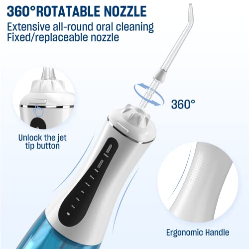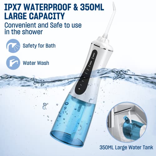 LARGE 350ML WATER TANK & IPX7 WATERPROOF: With a large 350ml water tank, our water dental flosser provides sufficient water for teeth cleaning without the interruption of adding water repeatedly. The IPX7 waterproof design makes it easy to use the water dental flosser for showering in the bathroom. The detachable design allows easy cleaning of the interior.