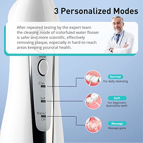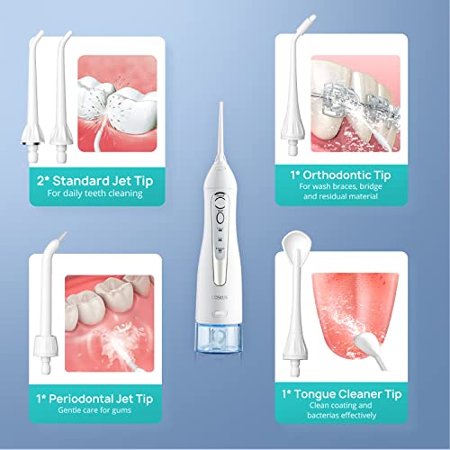 【MEET DIFFERENT NEEDS】Regular, gentle and pulse, 3 modes and 4 jet tip can clean all kinds of teeth and tongue for you in all directions and keep your breath fresh. And it is suitable for all people to use