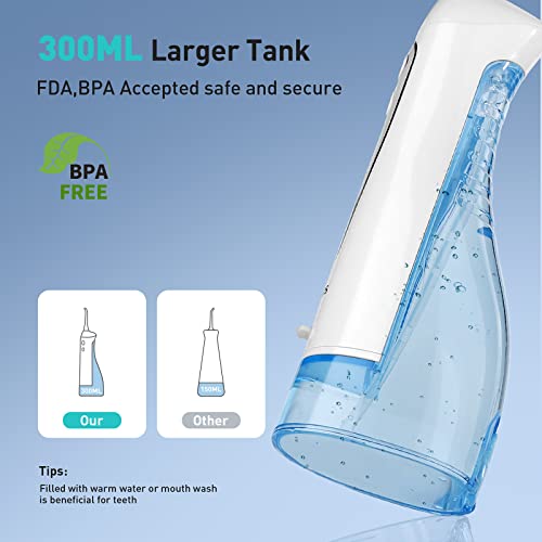 【100% WATERPROOF AND 300ml TANK】 The waterproof performance of our cordless water flosser is far better than other products. You can use it safely even when you are taking a shower. 300ml large-capacity water tank design allows you to easily meet the single cleaning needs without secondary water storage