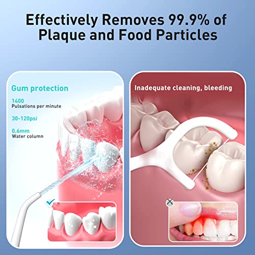 【DEEP CLEANING AND IMPROVEMENT OF GINGIVAL HEALTH】 0Equipped with 0.6mm ultra-fine double water column and 1400 water pressure pulses per minute, it achieves deep cleaning of teeth in an environment that protects gums and effectively removes 99.9% of dental buildup, which can prevent periodontitis and dental calculus