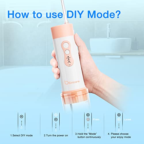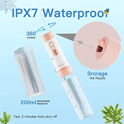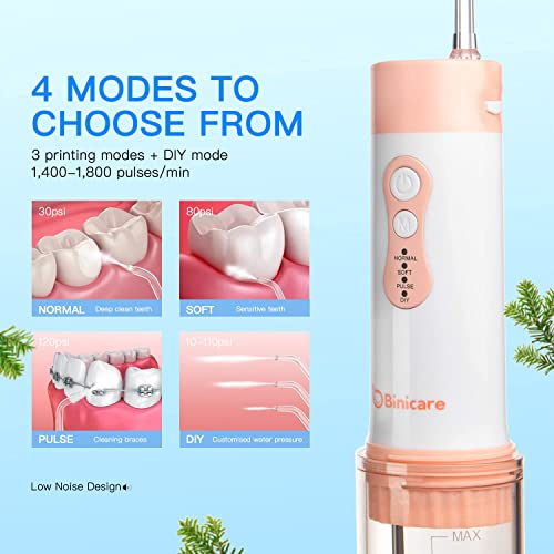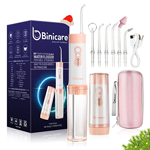 Water Flosser, Binicare Water Flosser for Teeth, IPX7 Waterproof 200 ml 6 Jet Tips &Travel Case, DIY Portable Dental Oral Irrigator Rechargeable Suitable for Travel Office and Home(Pink)
