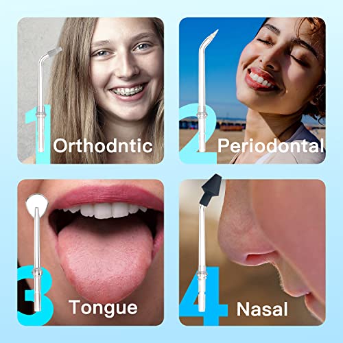 【DIY Flossing Mode and Normal Adjustable Modes】Water flosser comes with 4 pressure modes to choose from: DIY mode (10 to110 psi), soft (30 psi), plus(80 psi) and strong mode (120 psi) . High intensity pulsed water jets at 1400-1800 per minute efficiently deep into the gaps and blind areas of the mouth, quickly remove food residuces, protect the gums and bring a different feeling of freshness. The water flosser is suitable for someone who has orthodontic braces, sensitive teeth and bleeding gums.