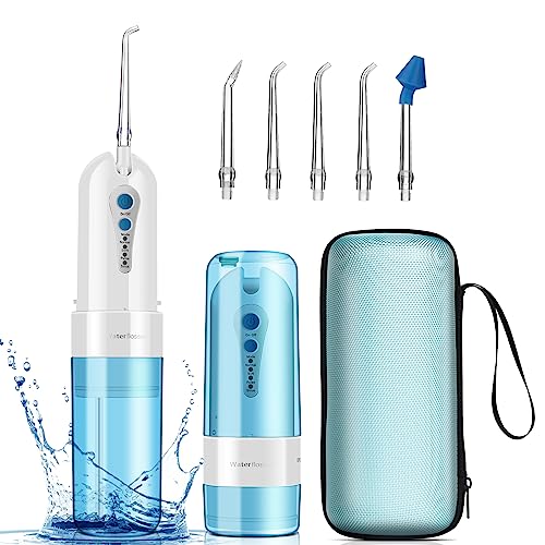 Water Flosser Professional Cordless for Teeth, KOOVON Portable Travel Teeth Cleaner – Electric Rechargeable Dental Oral Irrigator with 4 Modes & 5 Replacement Tips, IPX7 Waterproof, Travel Bag