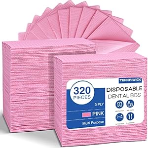 Dental Bibs & Facial Masks320 Pack Disposable Dental Bibs 13″x18″,3-Ply Waterproof Tattoo Bibs Sheet for Nail Salon,Dental Clinic,Feeding,Tattoo Shop (Pink)