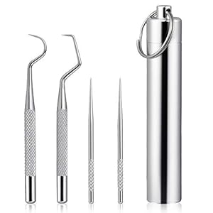 Portable Dental UniteWorldity 5Pcs Portable Toothpicks Set, Portable Reusable Stainless Steel Toothpicks, Professional Teeth Cleaning Tools, Dental Picks with Toothpick Holder and Key Ring for Travel Picnic Camping