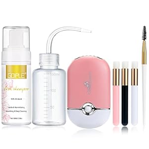 AccessoriesWOZUTUNT 100ml Eyelash Extension Cleanser Lash Mousse Lash Shampoo for Extensions, USB Mini Portable Fan Rechargeable Electric Handheld Air Conditioning Lash Shampoo Brush Plastic Wash Bottle Kit